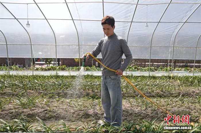 “新农民”吴杰祥在“吴先生的花园”里精心培育各种花卉和绿植。照片由肖普县综合媒体中心提供